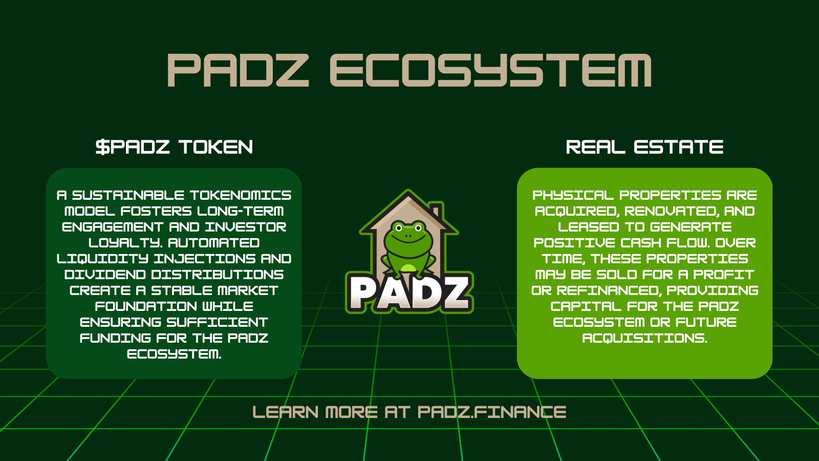 PADZ follows a rigorous property acquisition and management strategy, selecting high-growth properties in strategic markets. These assets are professionally managed to optimize returns and ensure long-term appreciation. Investors not only benefit from property value growth but also from the ability to trade their tokens on decentralized exchanges, providing liquidity that conventional real estate investments lack.